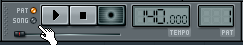If you want to change to a new pattern all you have to do is click in the area that says pattern in the playback icon section and you will notice that next to the tempo, where it says PAT, all you need to do is using your mouse, drag up or down or alternatively use the minus and plus signs on your keyboard to change the value, and thus, change the selected pattern.